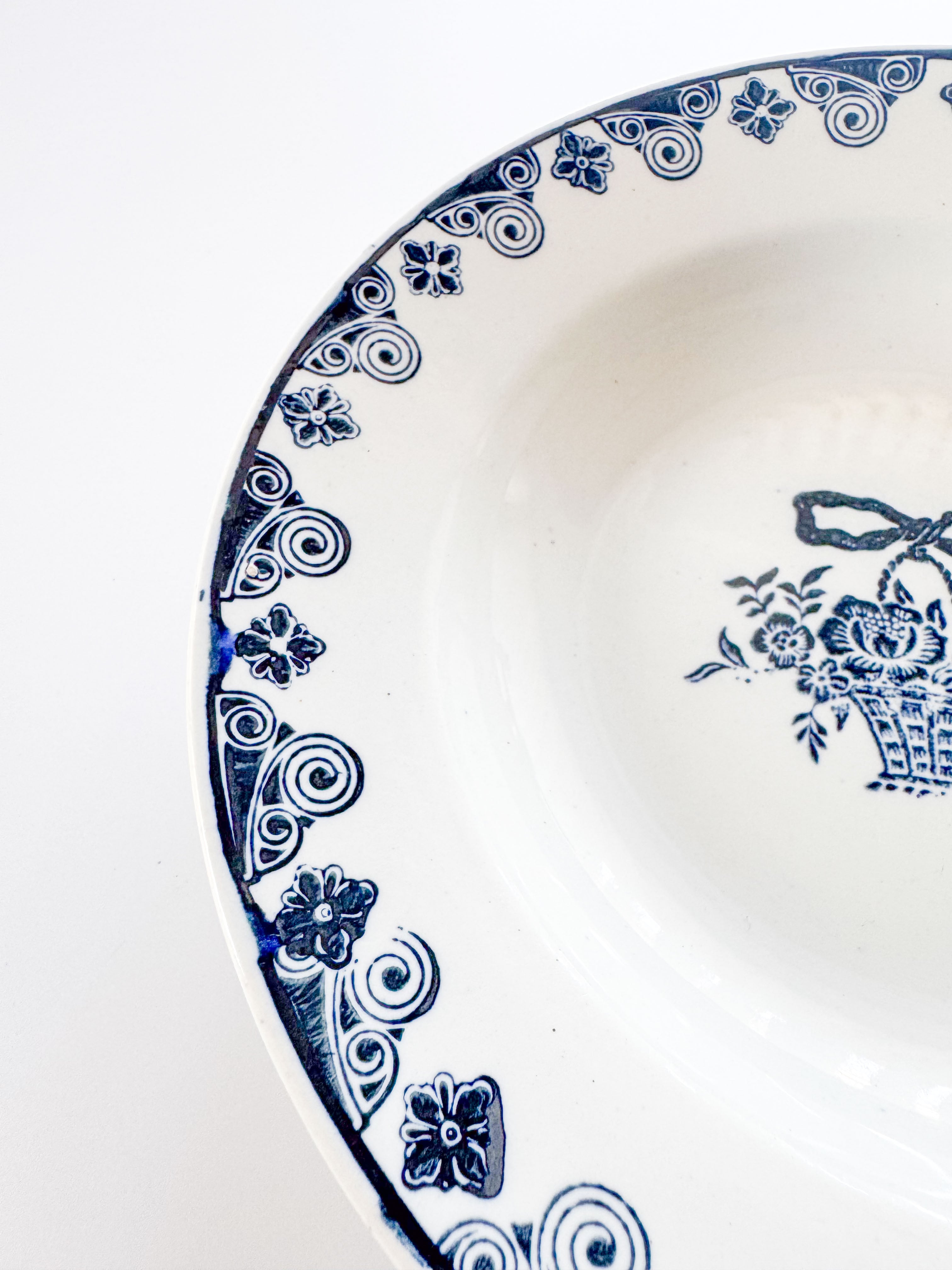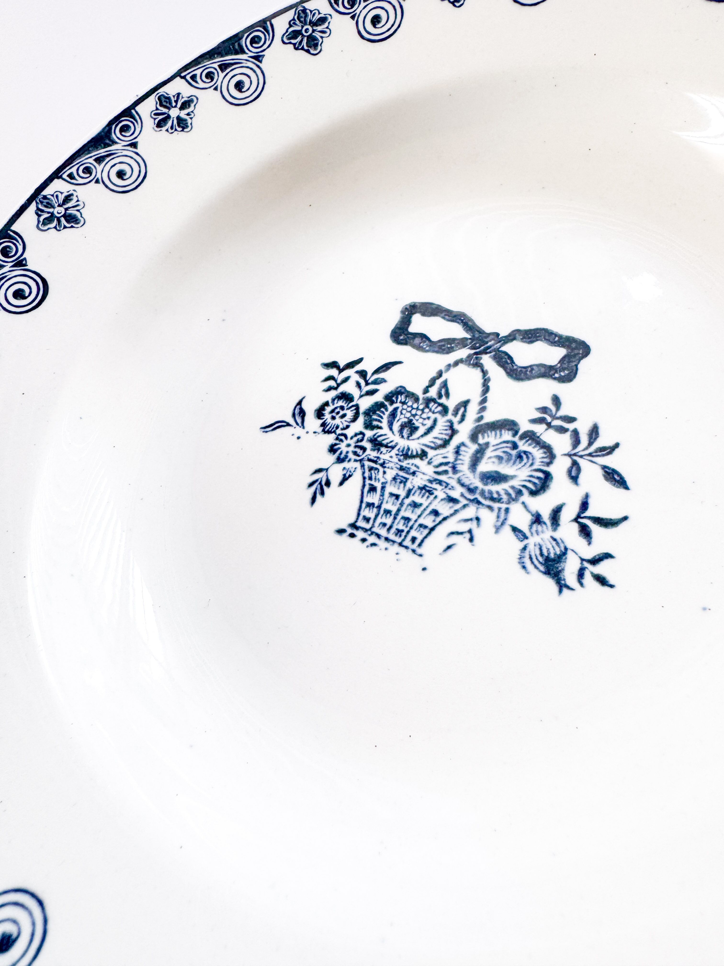 中央に可愛いフラワーバスケットがデザインされたスーププレート。