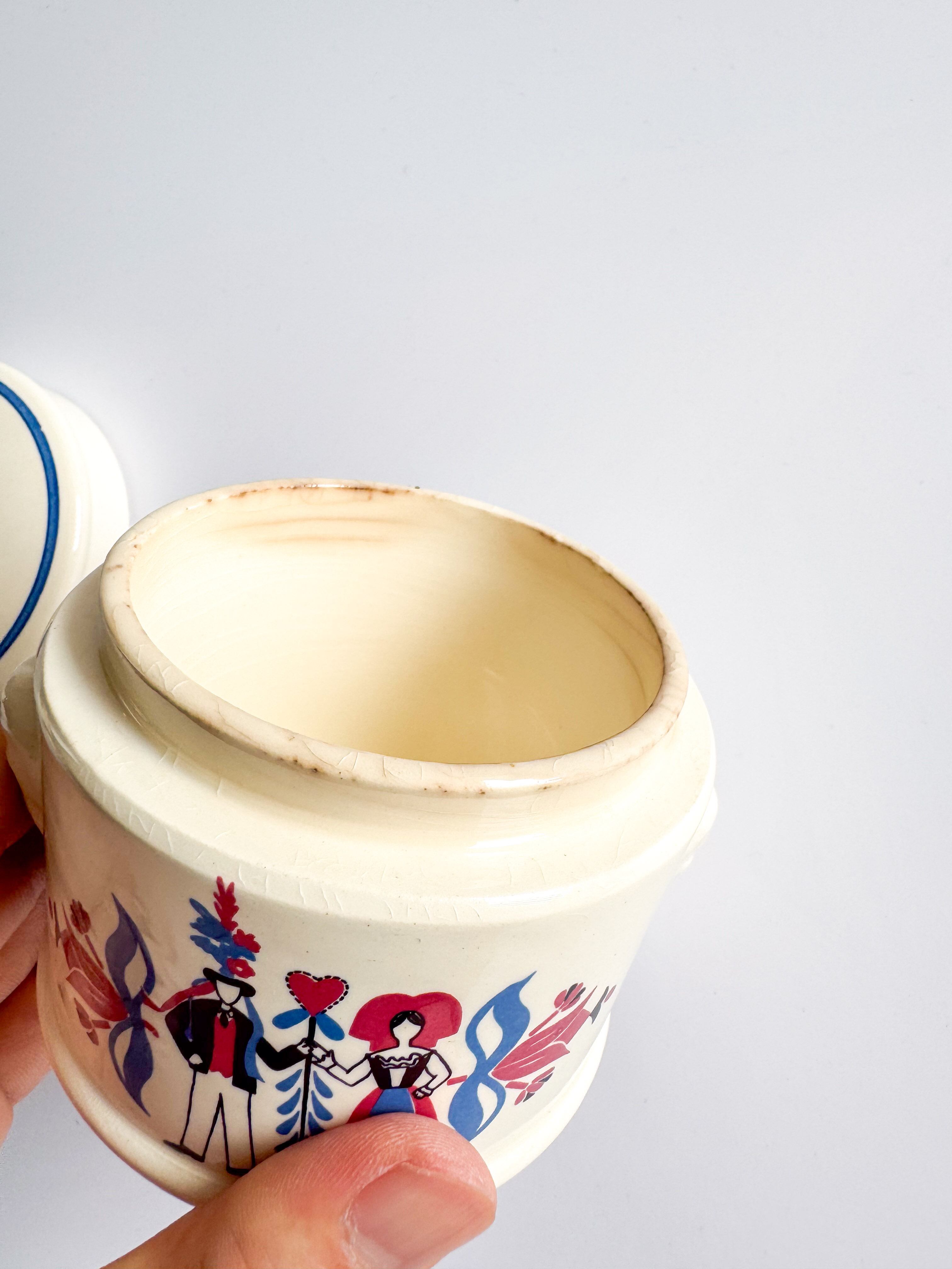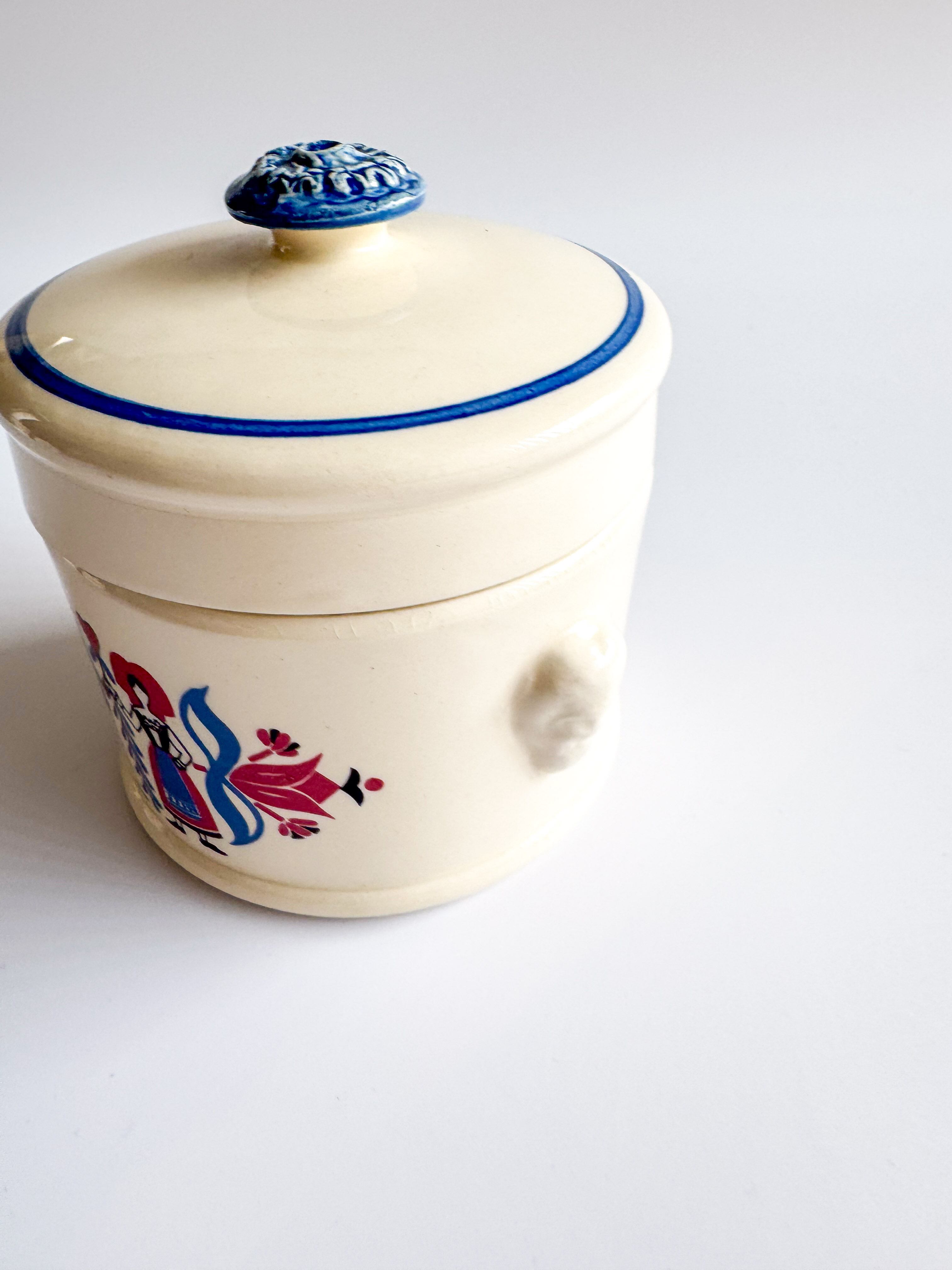 容器の側面には、民族衣装を着た男女が描かれており、これはリボーヴィレという地名がアルザス地方にあることに由来している可能性があります。
