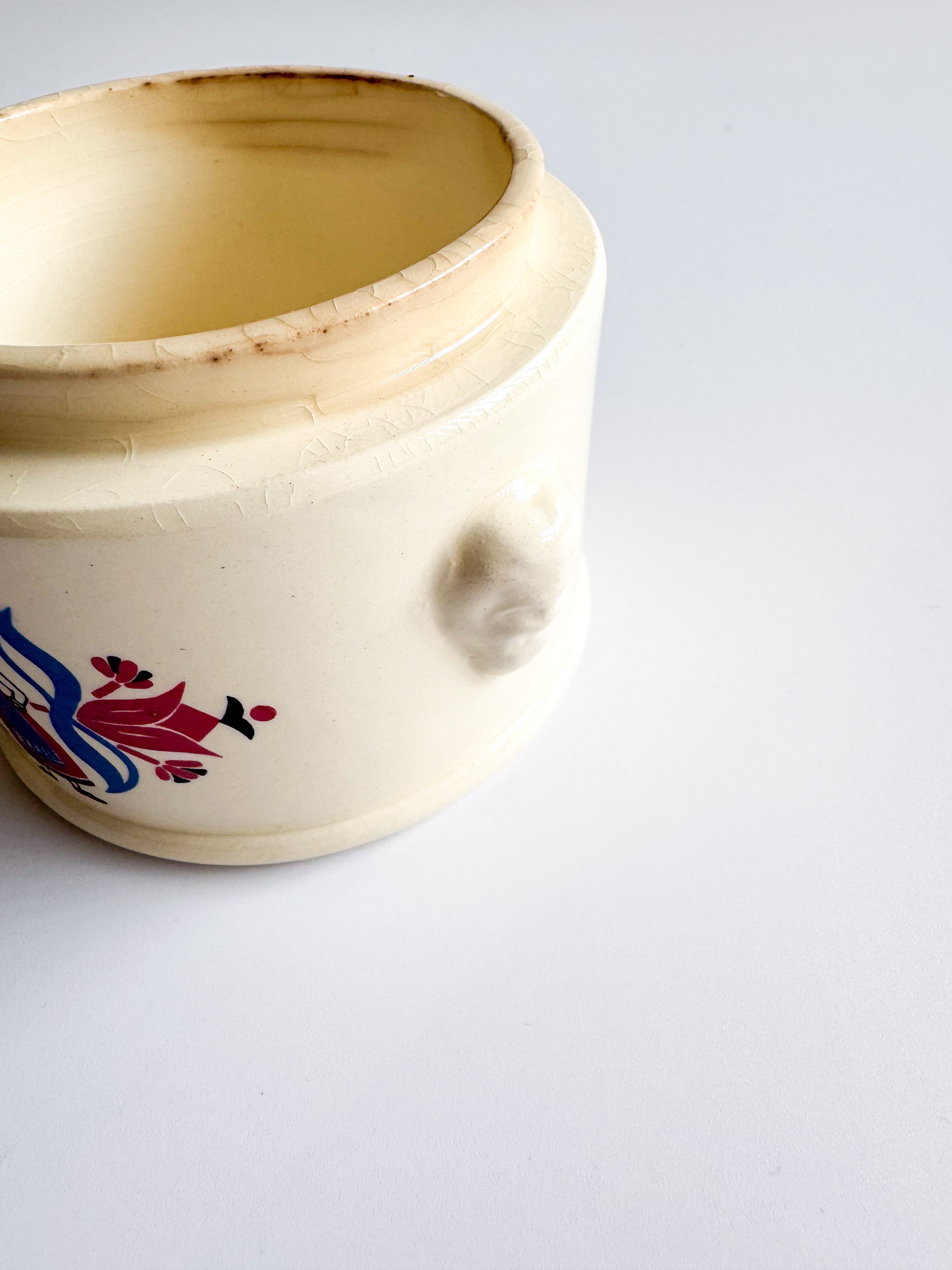 蓋付きの容器で、おそらくフォアグラなどの保存用に使われていたものと考えられます。