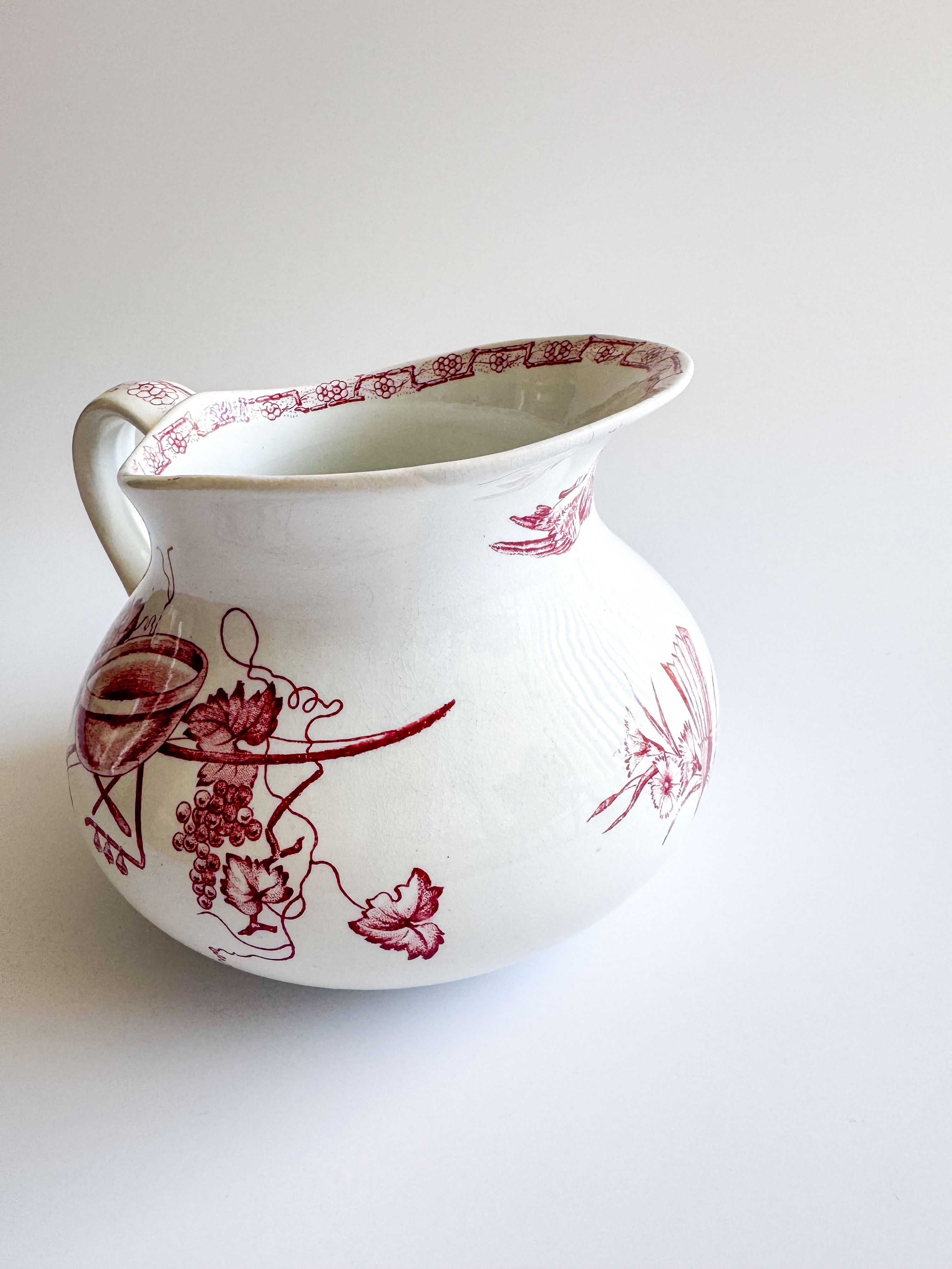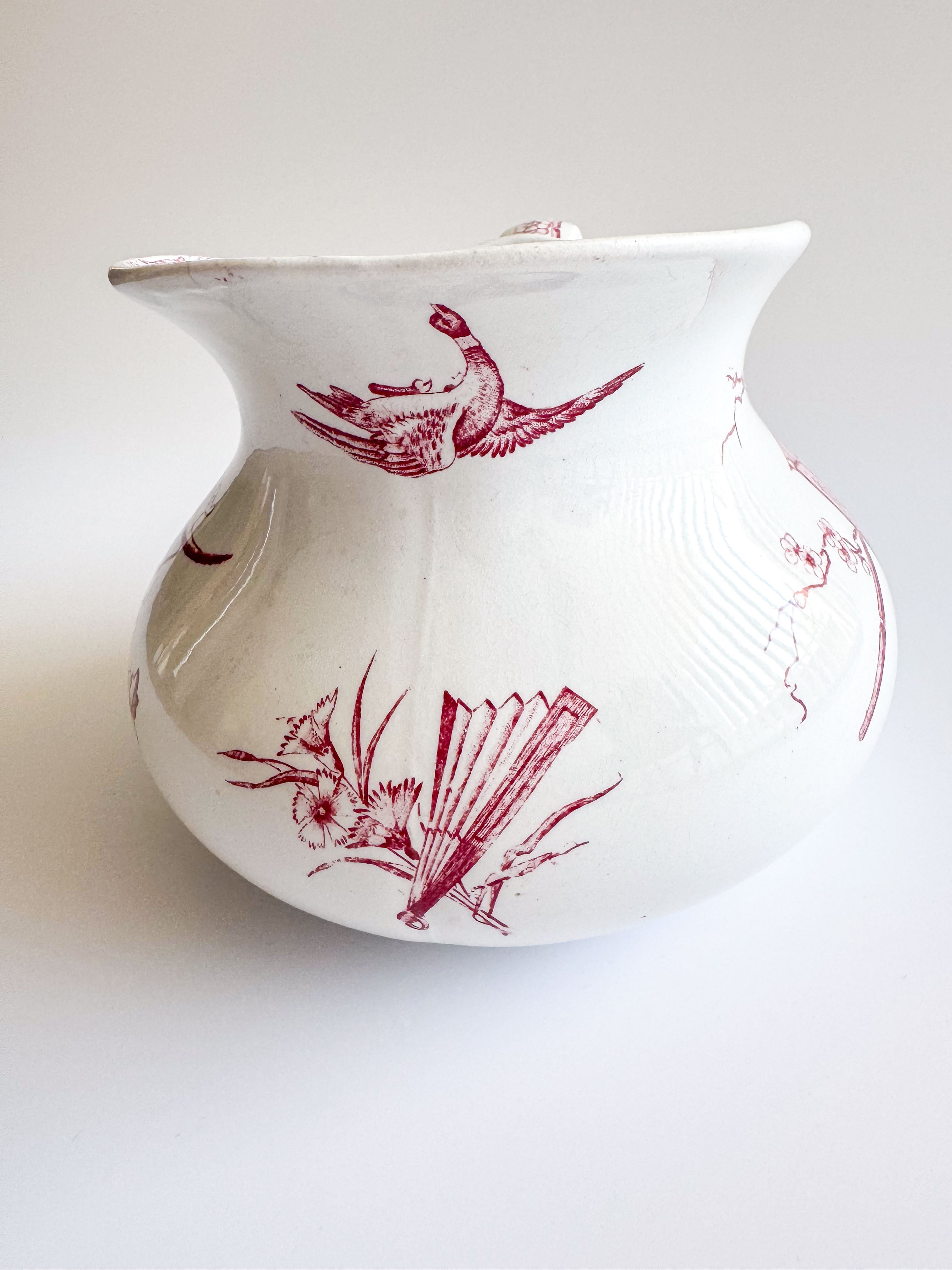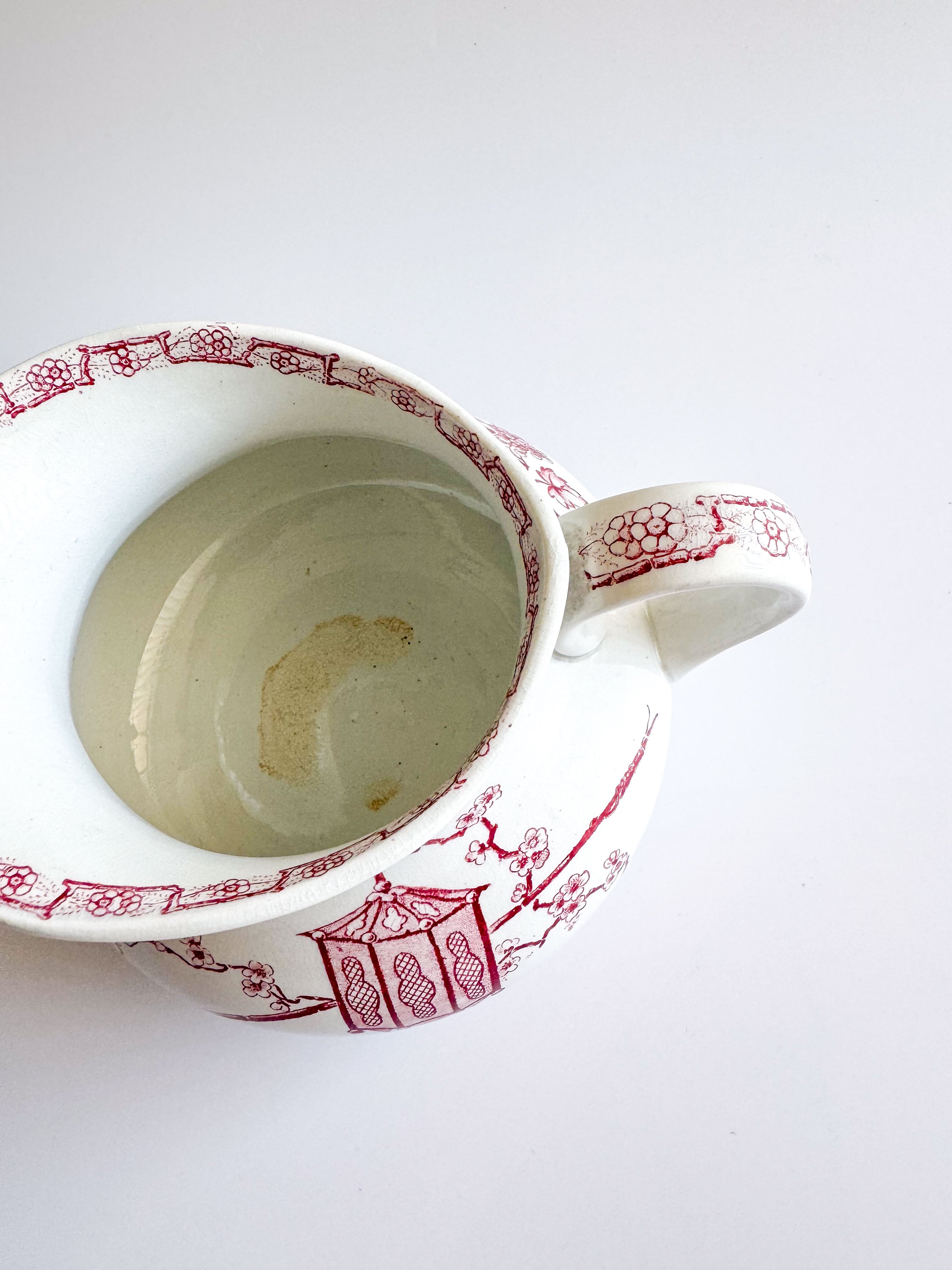 赤いカラーで描かれた梅や木の枝などが美しいピシェ(水差し)。