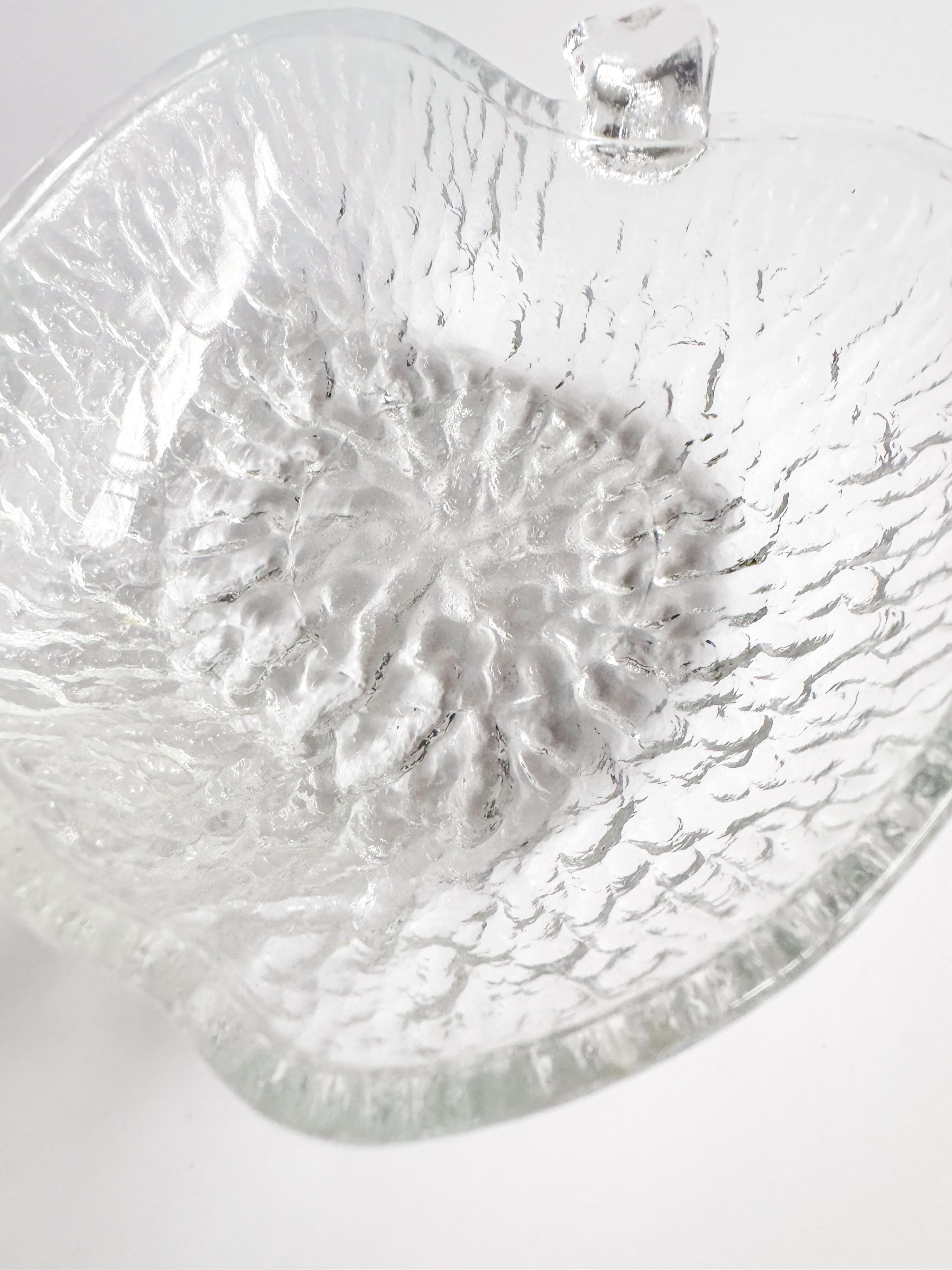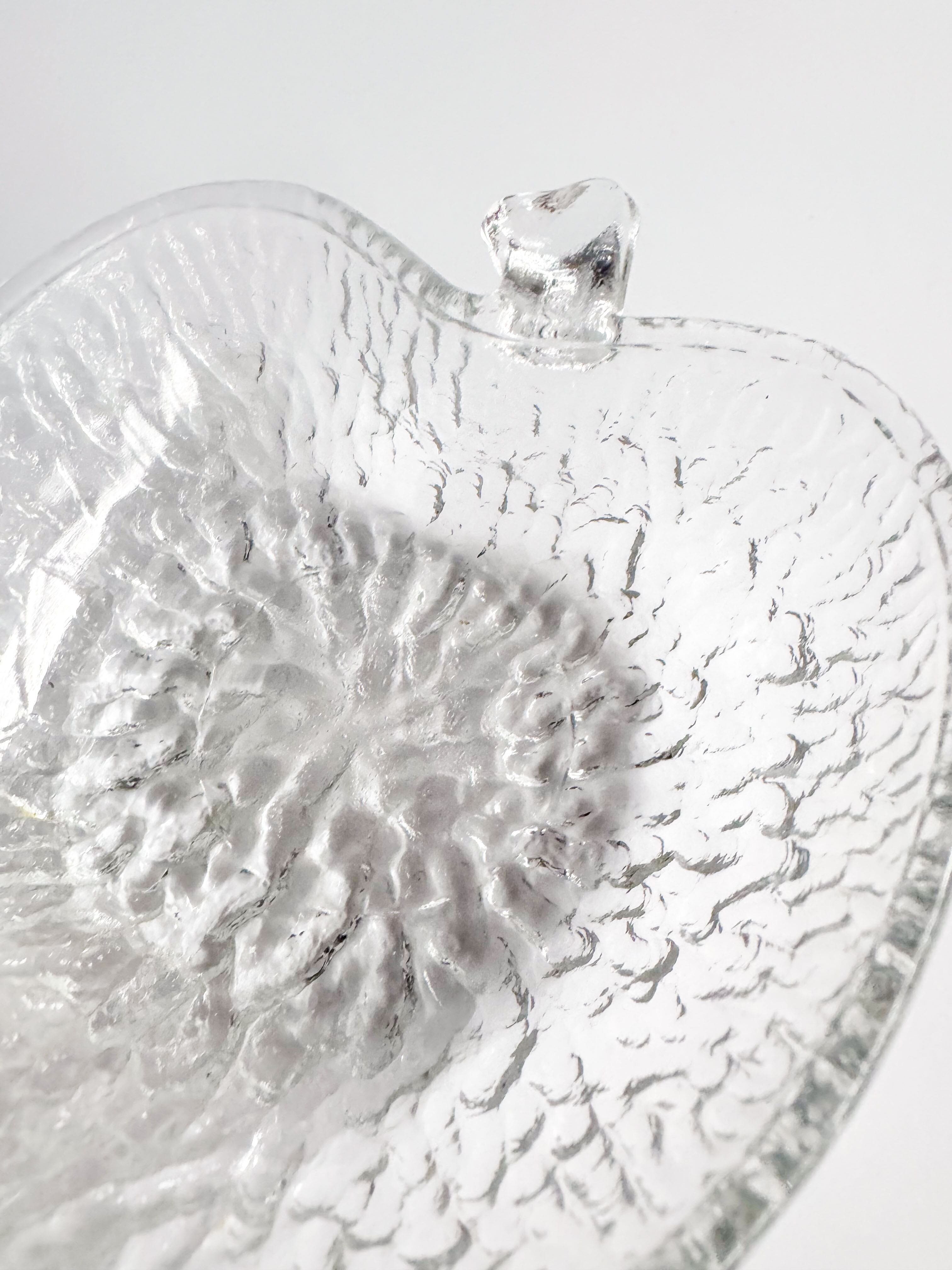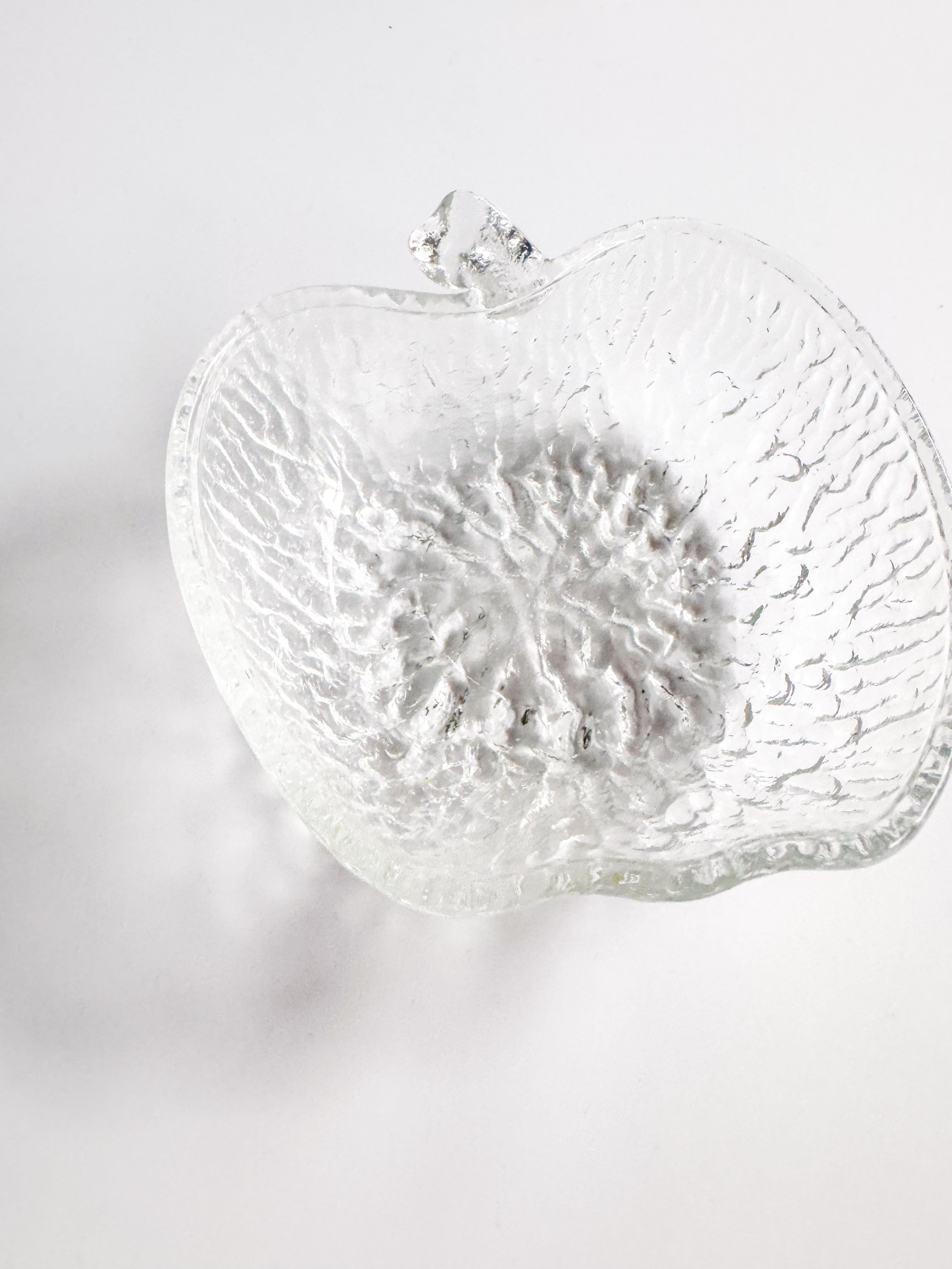 リンゴを食べるときのために使用されていたガラスのボウル。
