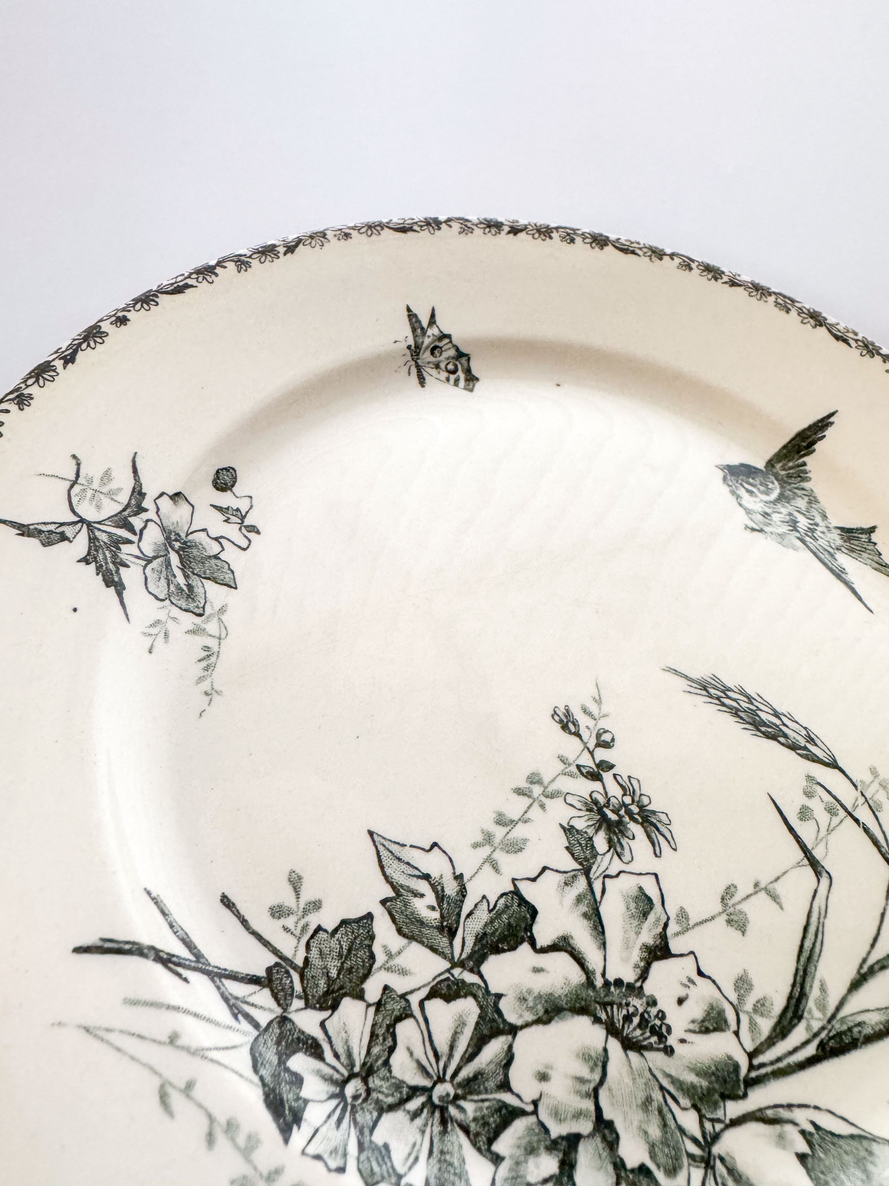 温かみのあるクリーム色の皿地に、深みのある青色で絵柄が描かれています。