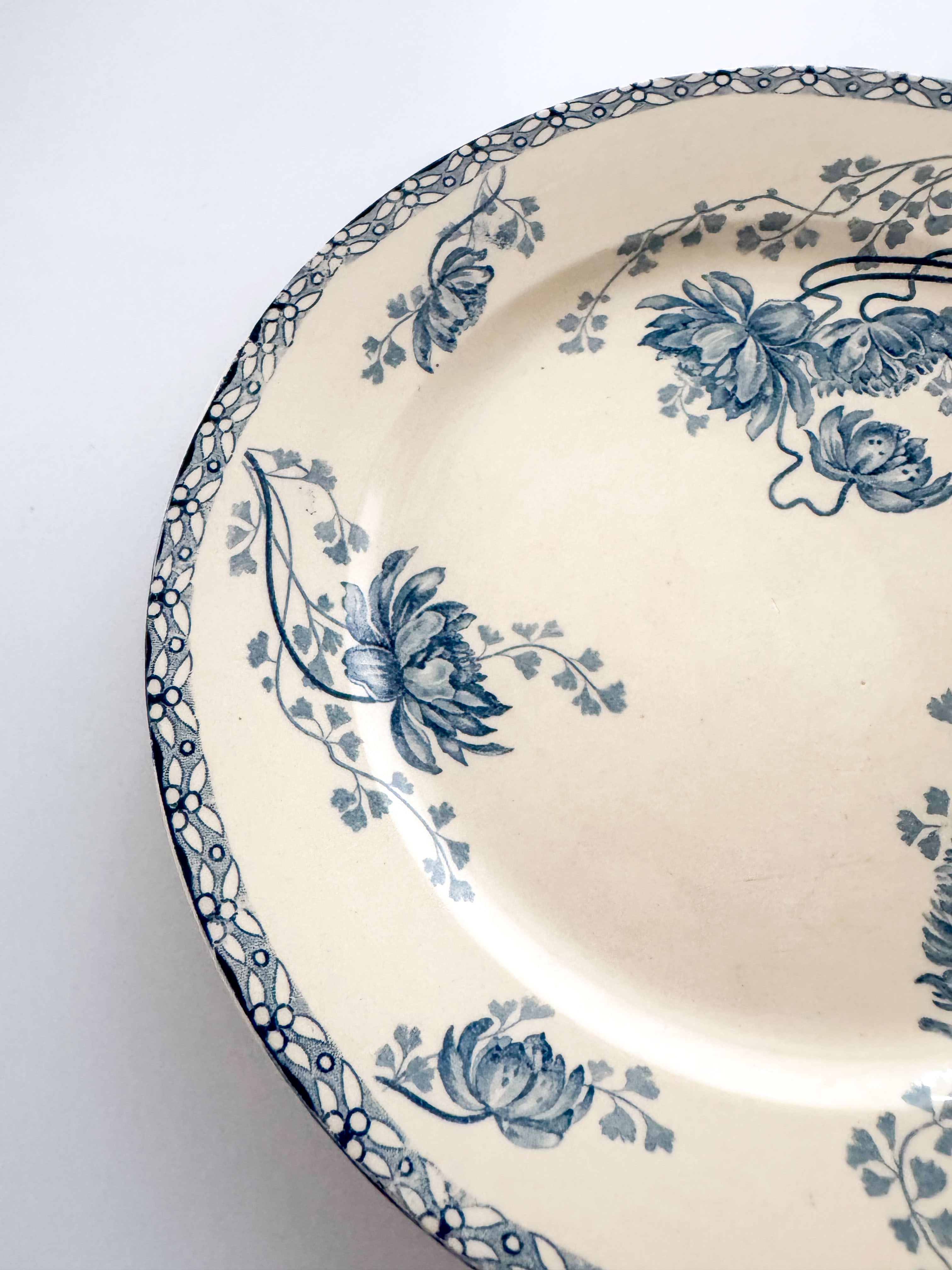 リムを縁どる花模様がはっきりと冴えて美しいアンティークプレート。