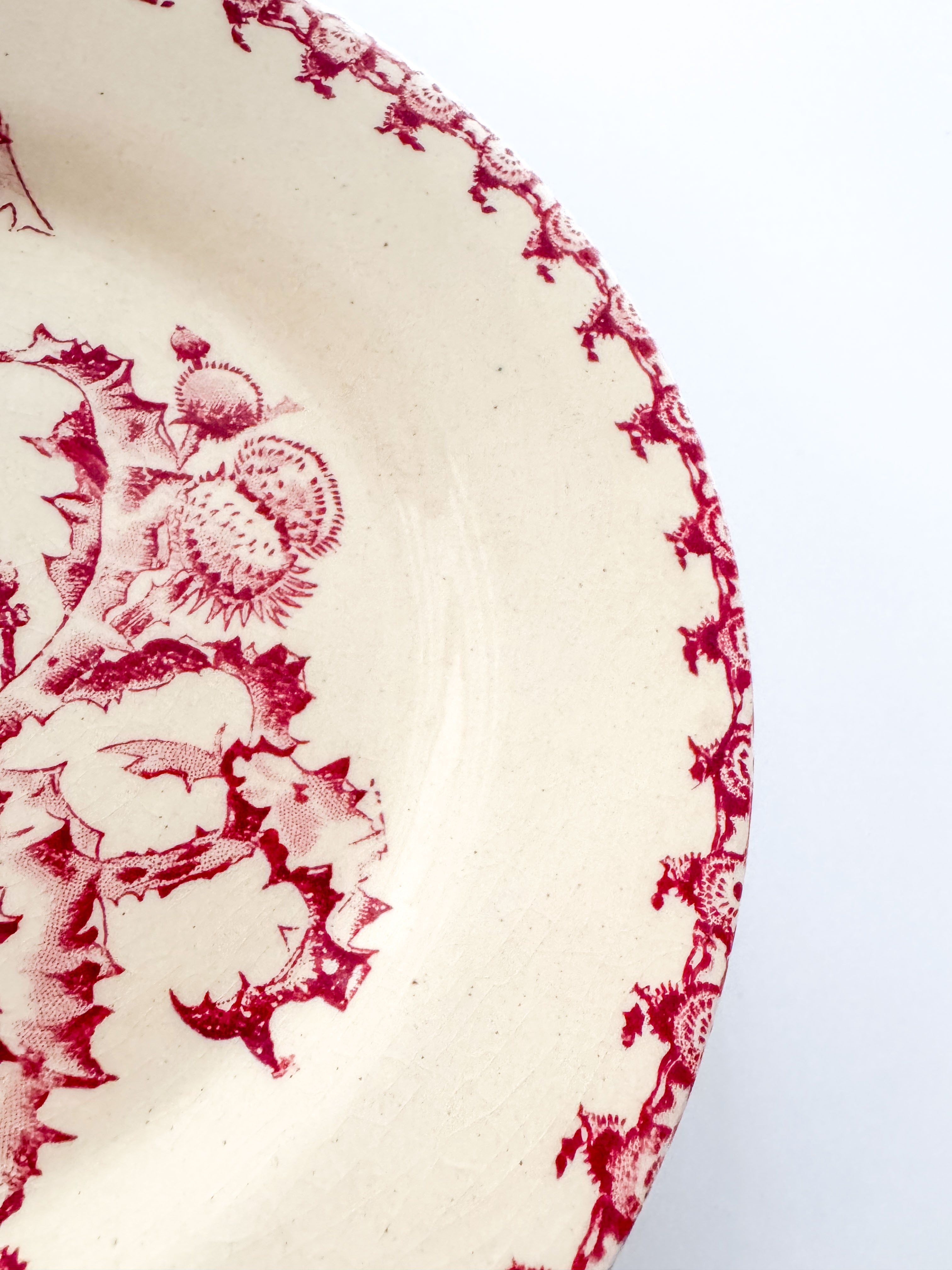 アイボリー色の皿地に、深い赤色が鮮やかです。