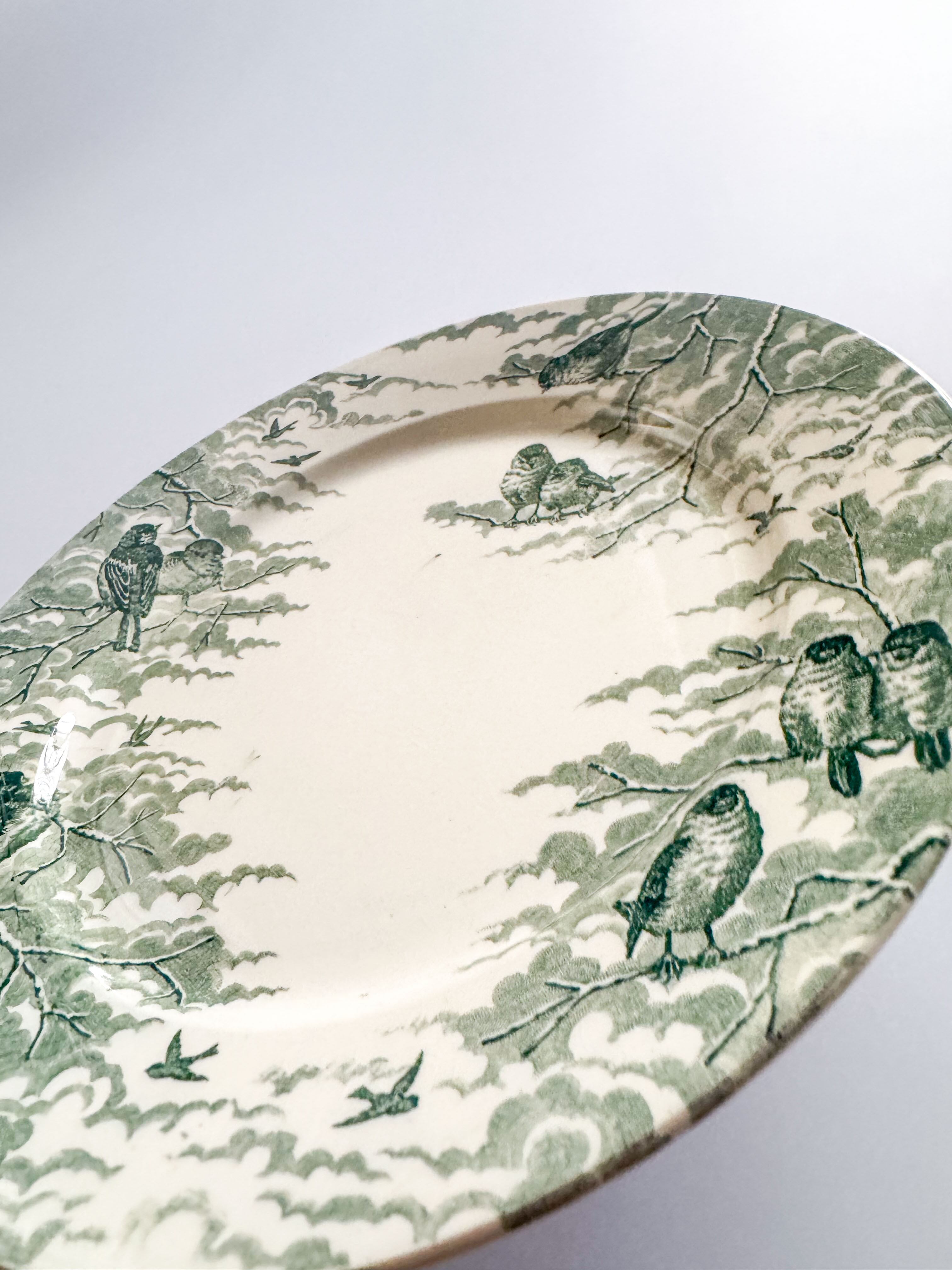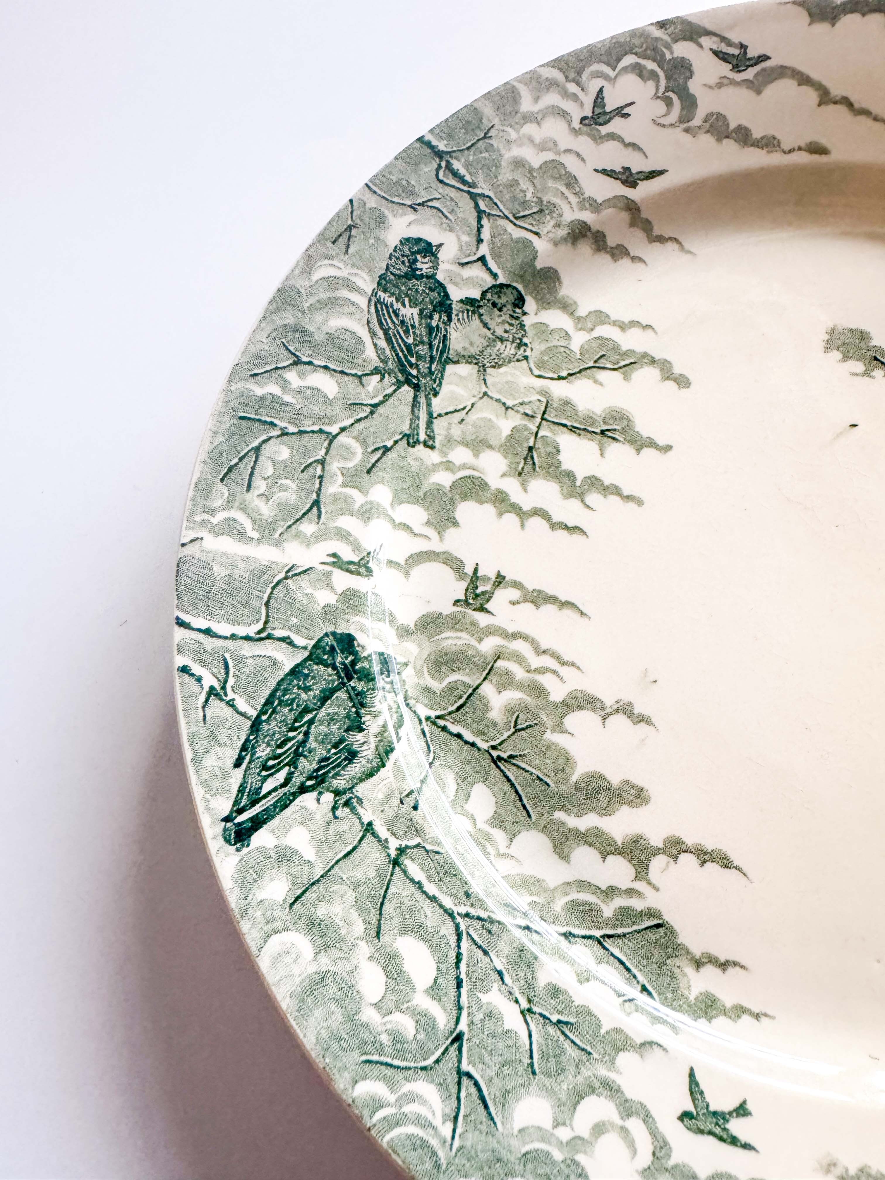 シンプルながらも洗練されたデザインが特徴で、雪景色の中で羽ばたく鳥たちを連想させるような、情緒あふれる絵柄が魅力的なお皿。