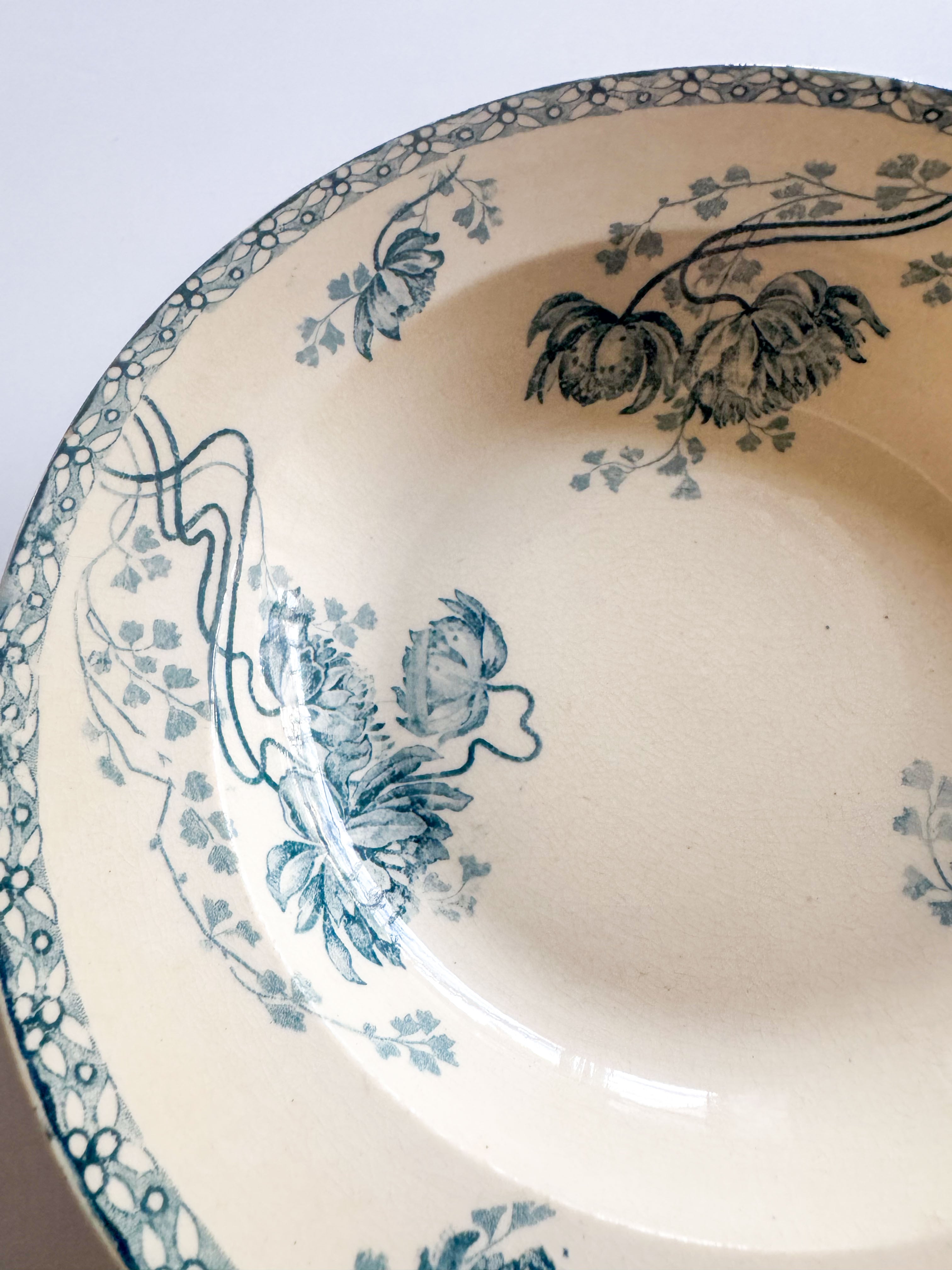 リムを縁どる花模様がはっきりと冴えて美しいアンティークプレート。
