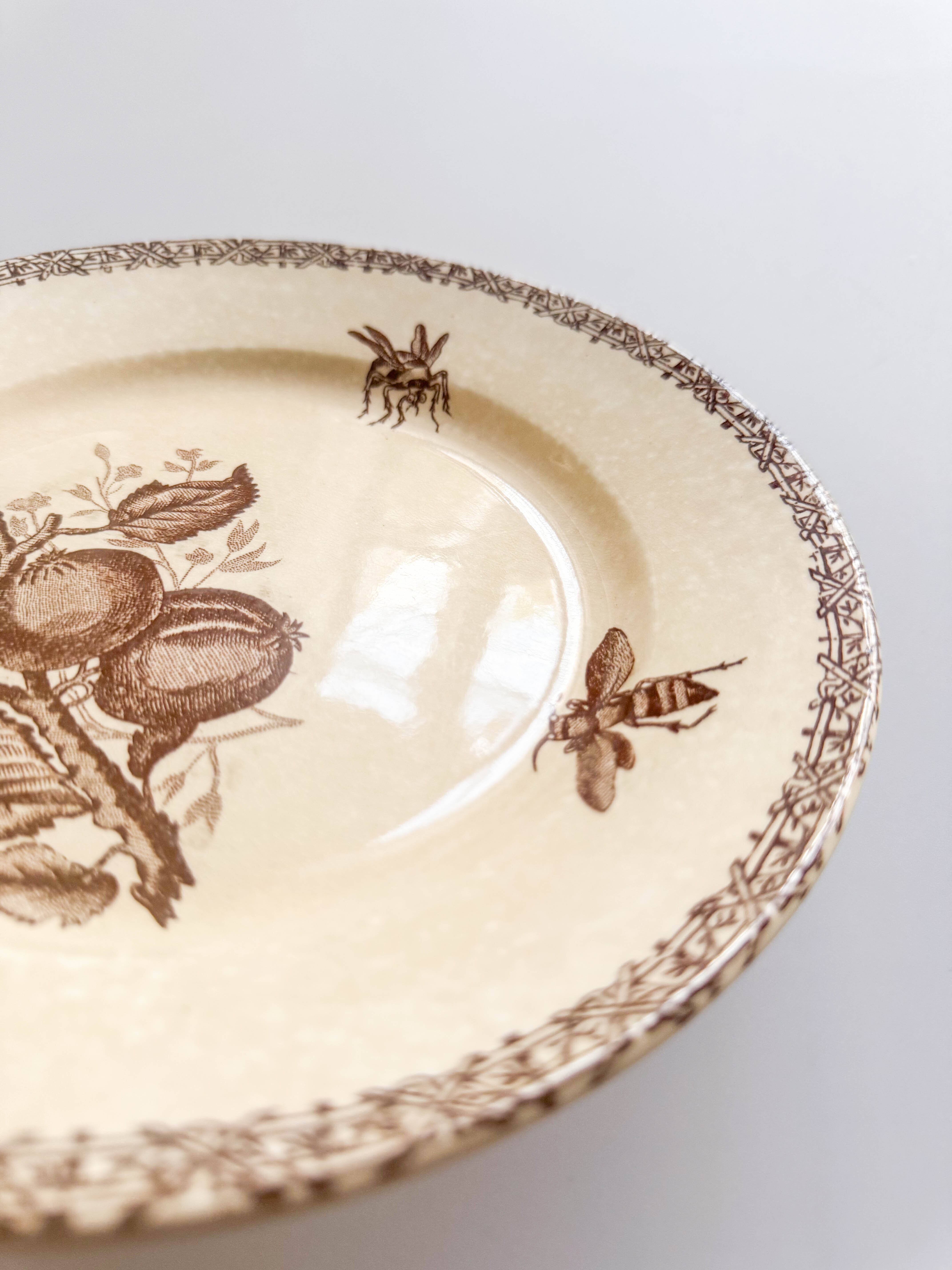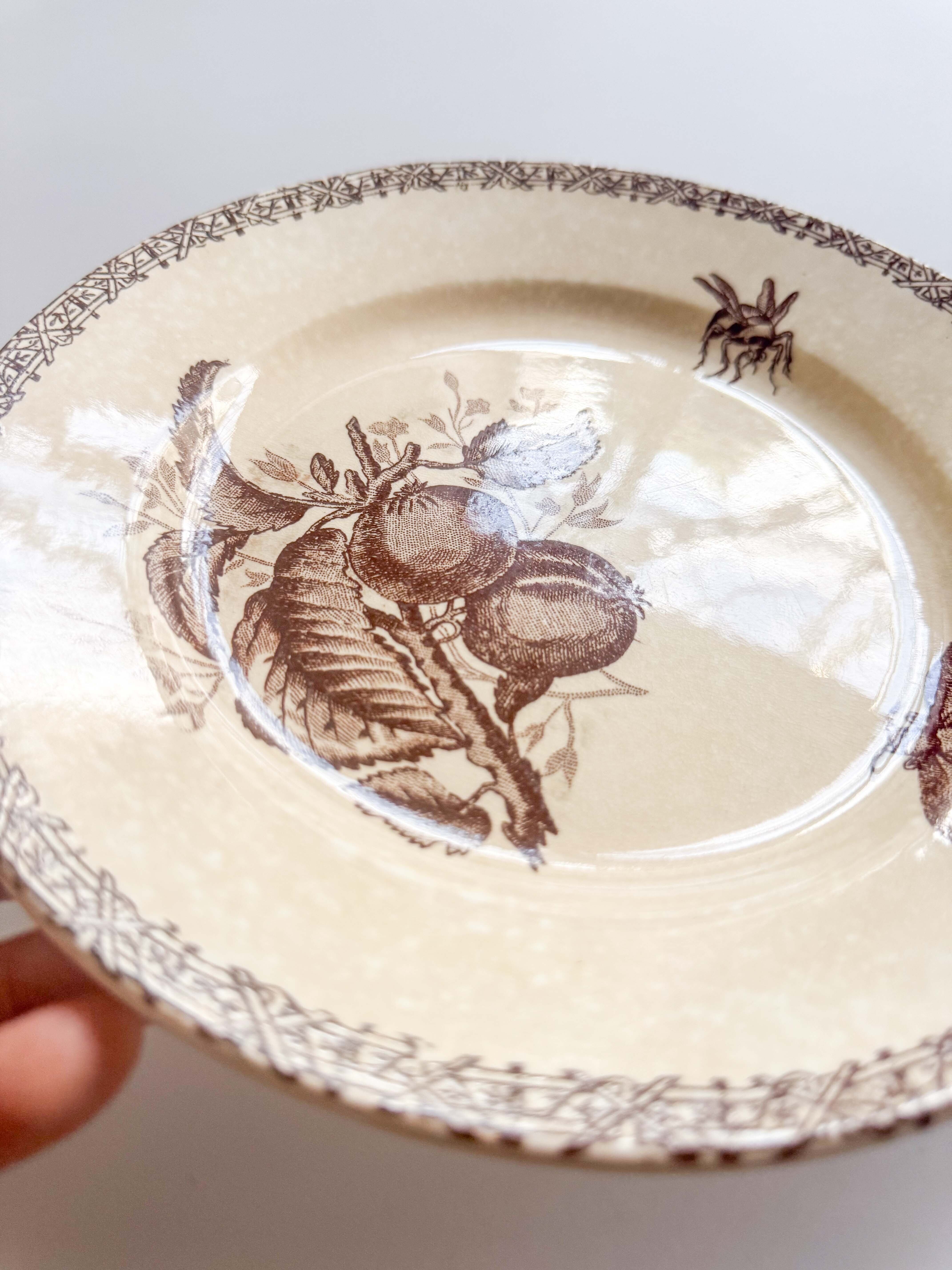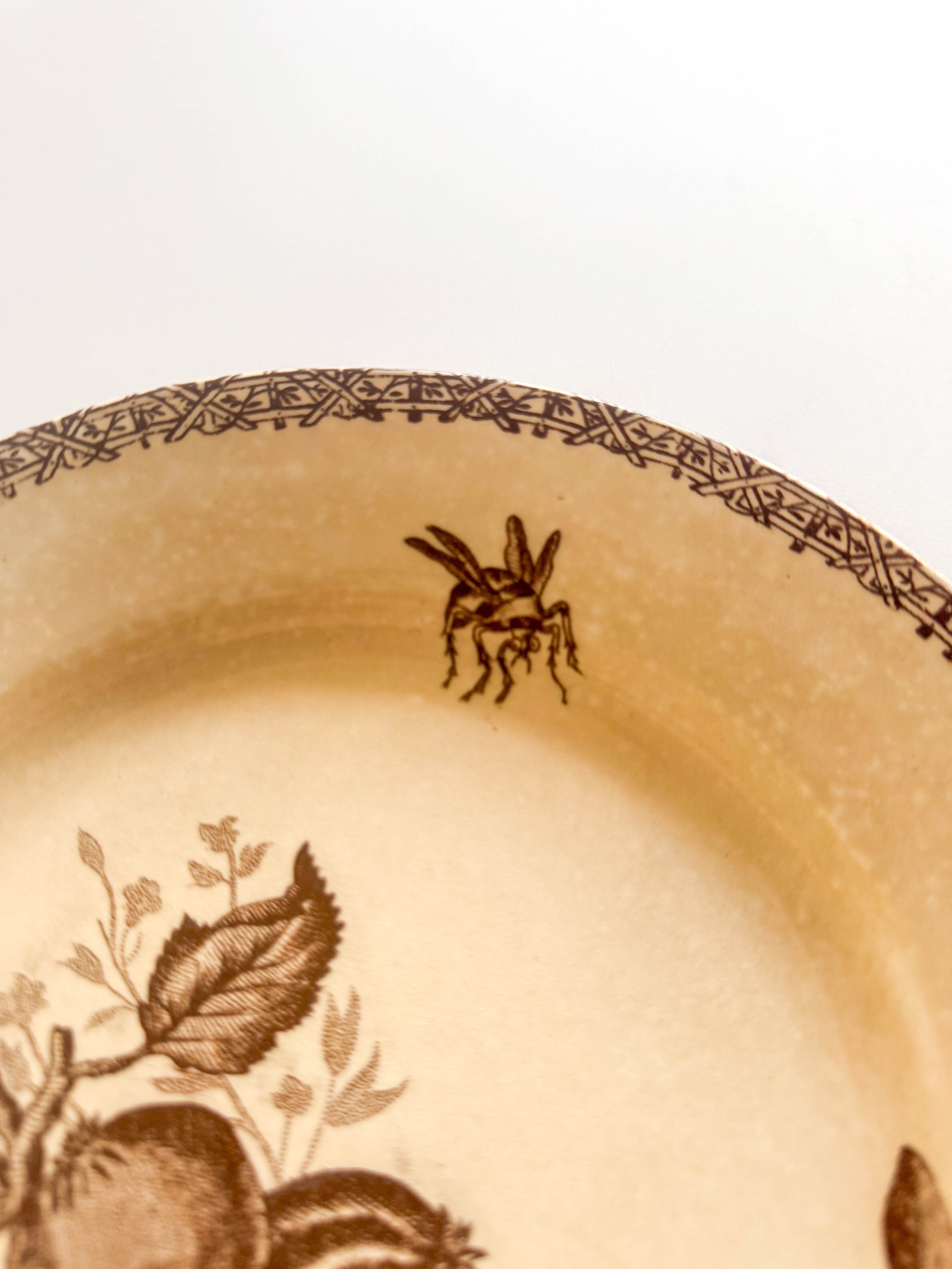 昆虫と果物が描かれたプレート。