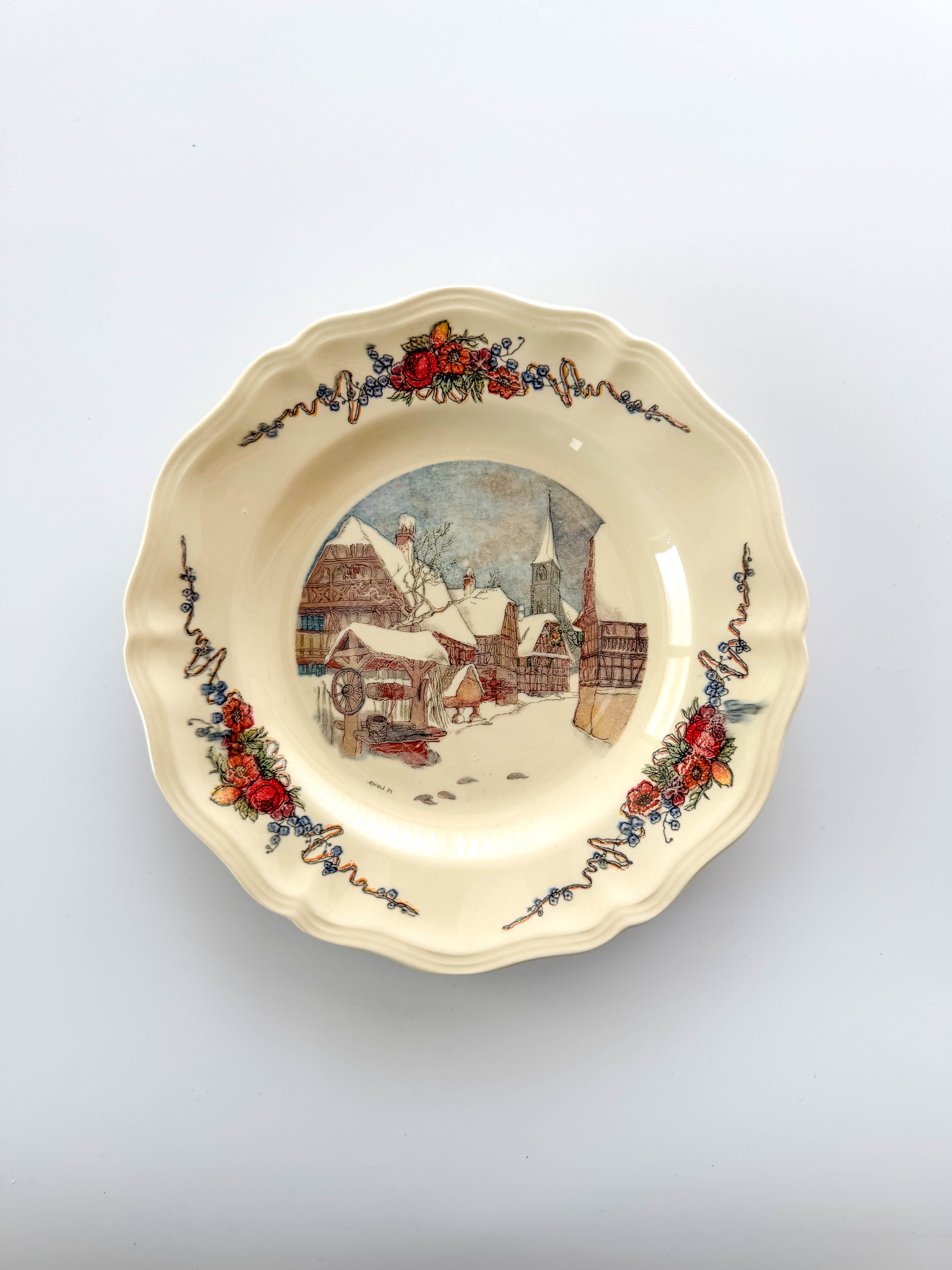 Sarreguemines / サルグミンヌ "Obernai" 花リム スーププレート #1 [260328]