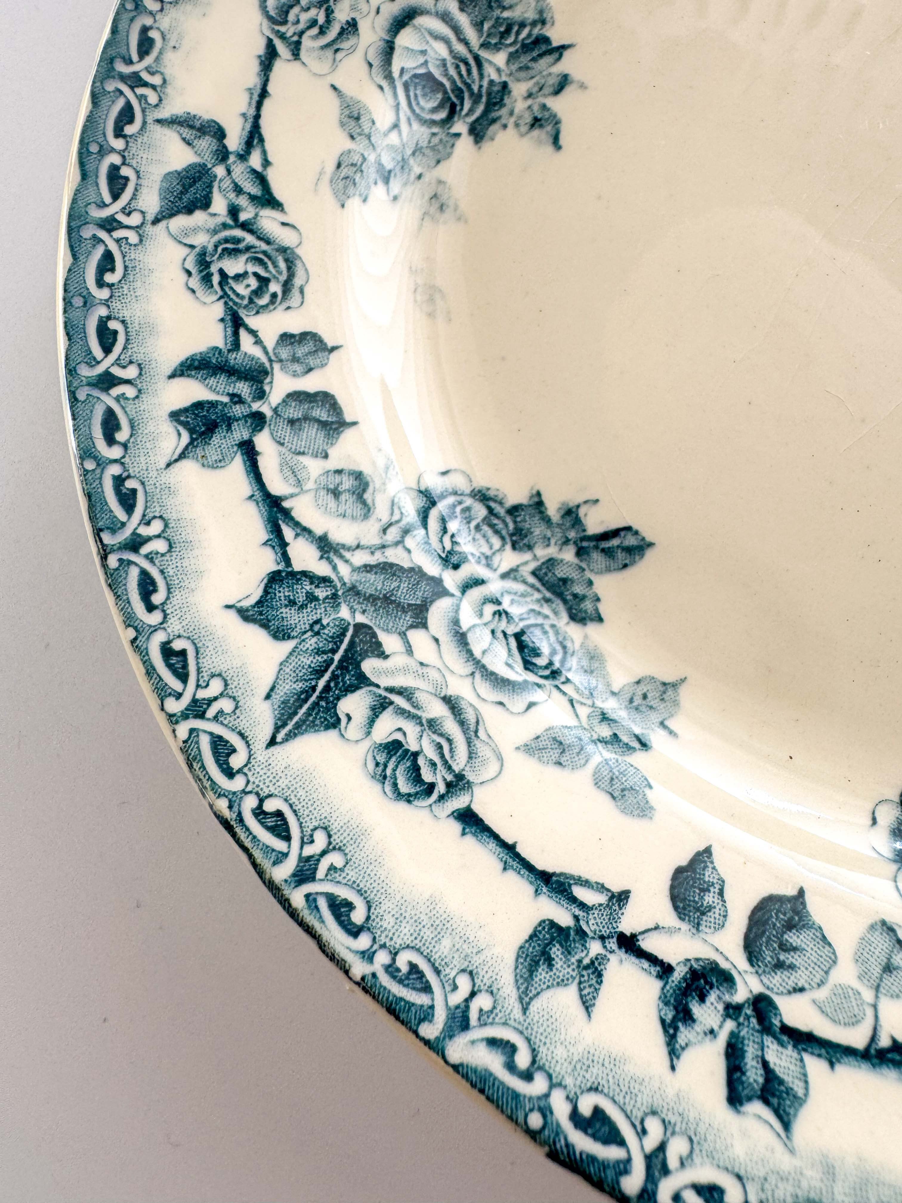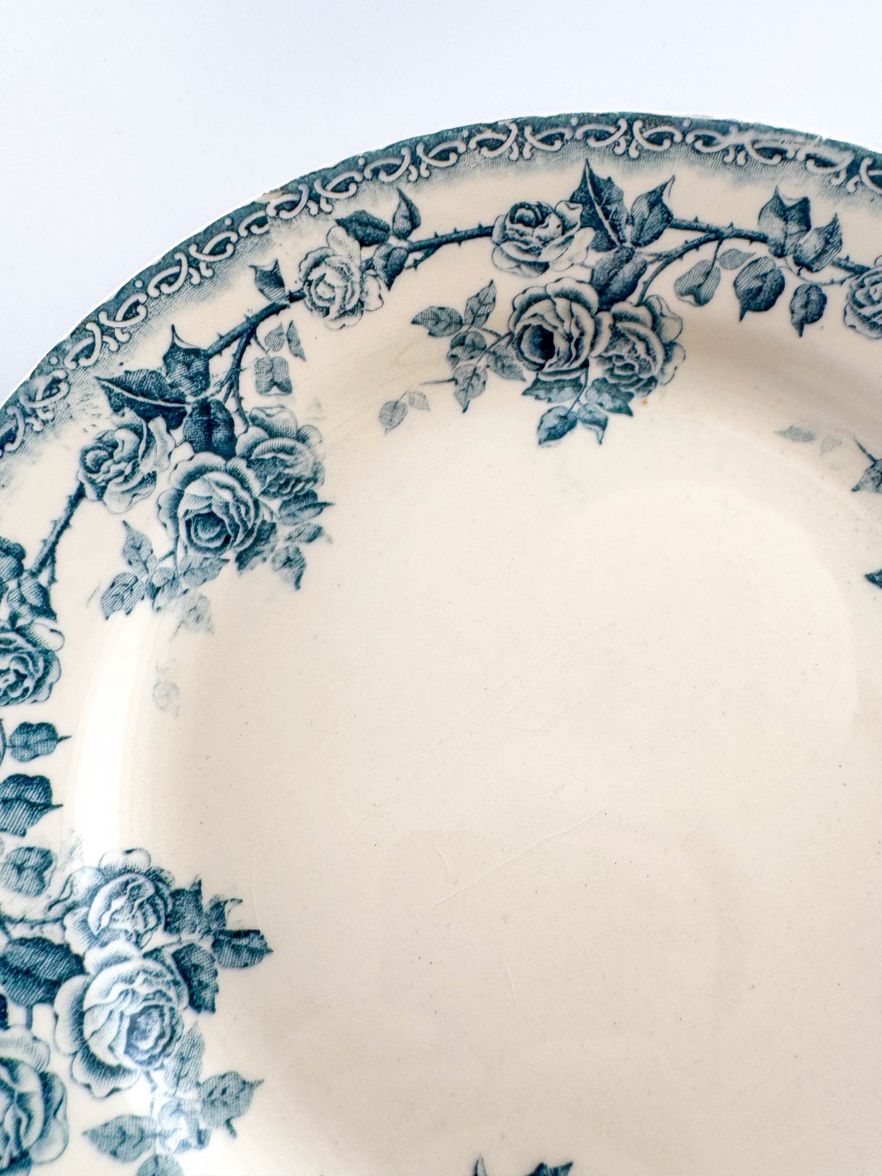 バラの模様がぐるりと囲む美しいデザイン。